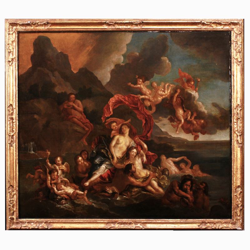 "Il trionfo di Galatea", olio su tela, entro cornice in legno dorato