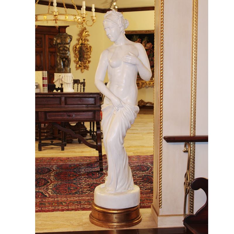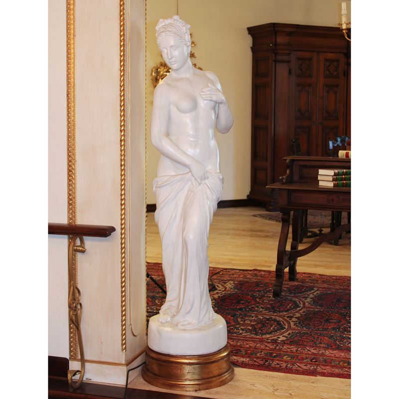 raffiguranti due figure femminili poggianti su basi circolari dorate