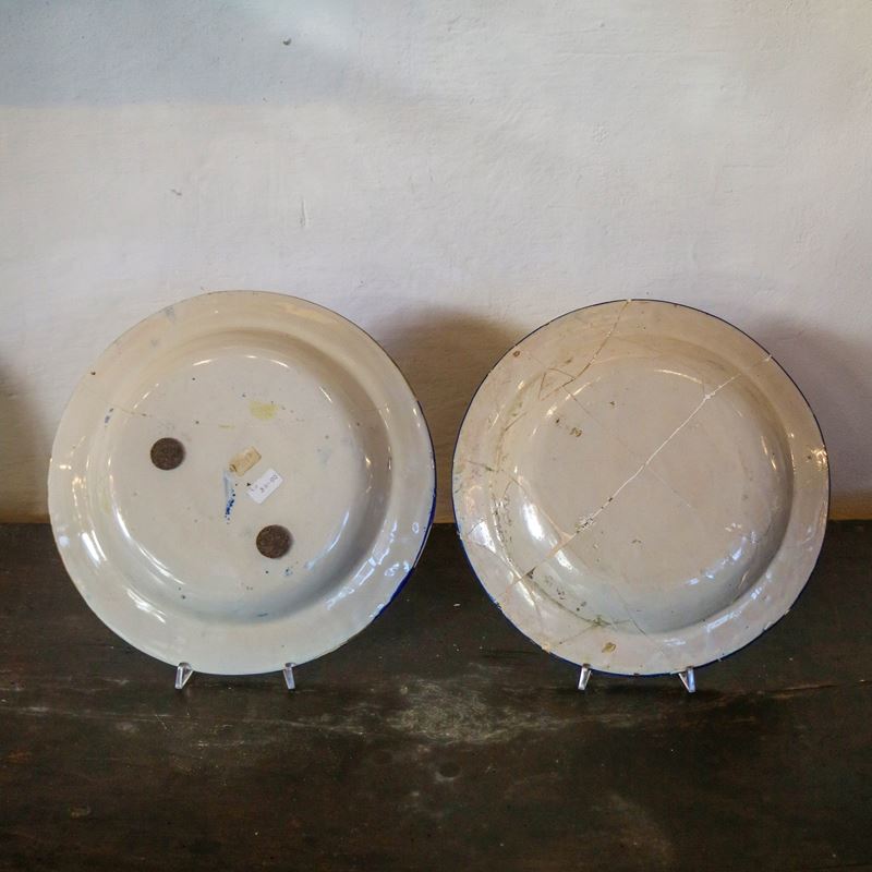 decorata nelle tonalità del bianco e del blu, difetti e restauri