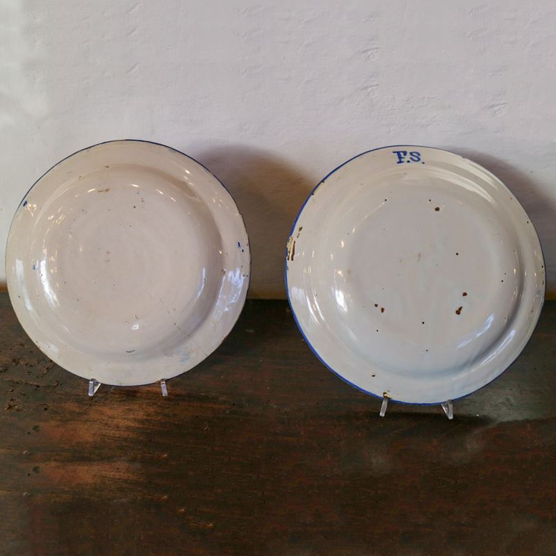 Due piatti in maiolica, Italia, XIX sec.