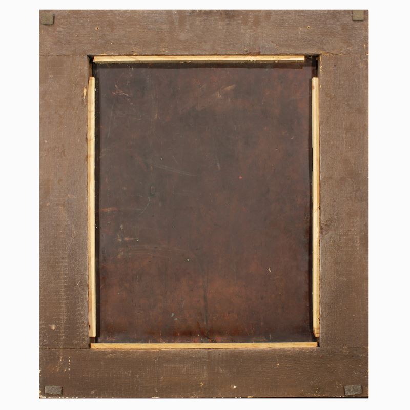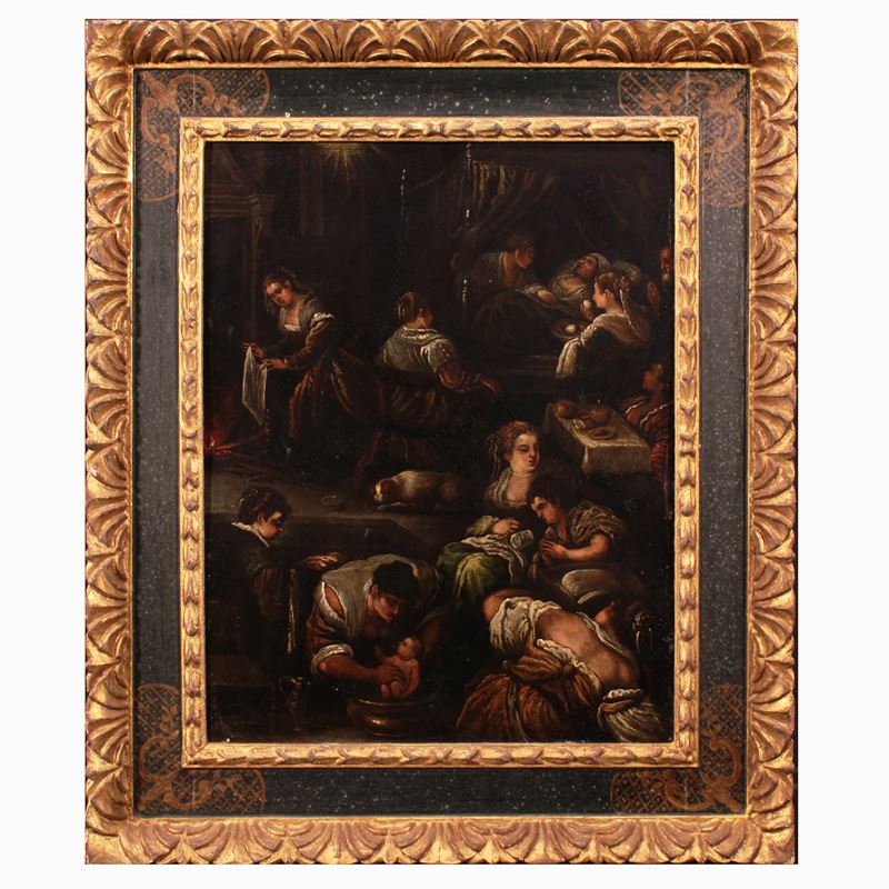 "La nascita della Vergine", olio su rame, entro cornice in legno laccato e dorato