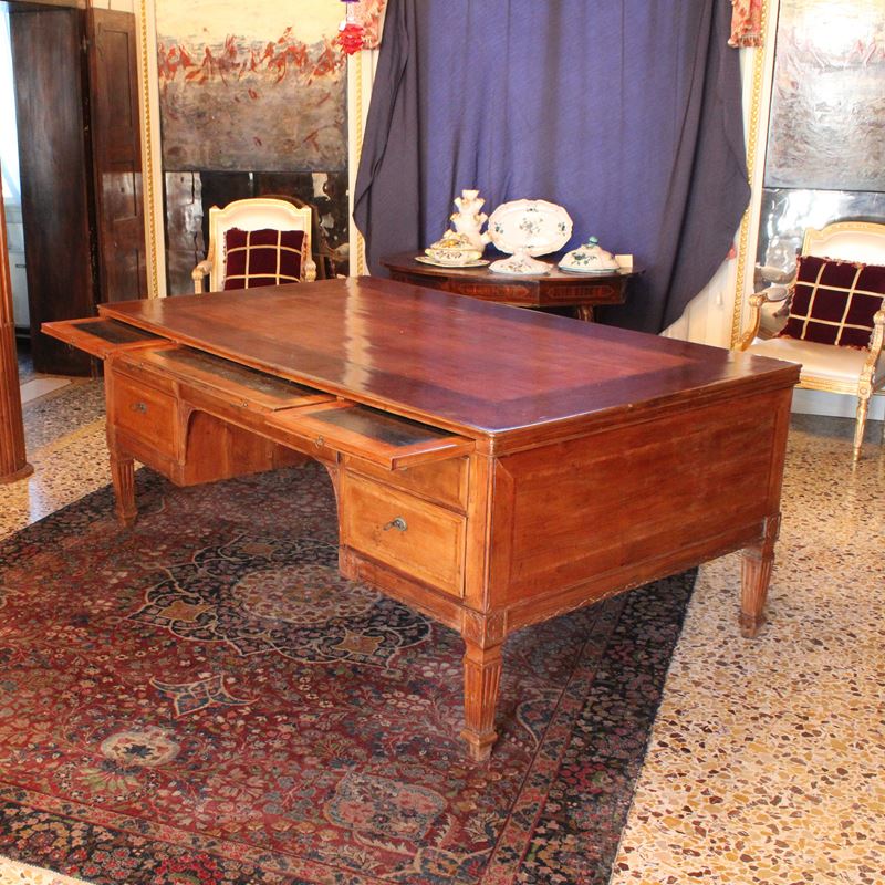 Grande scrivania da centro in noce, Italia, XVIII-XIX sec.