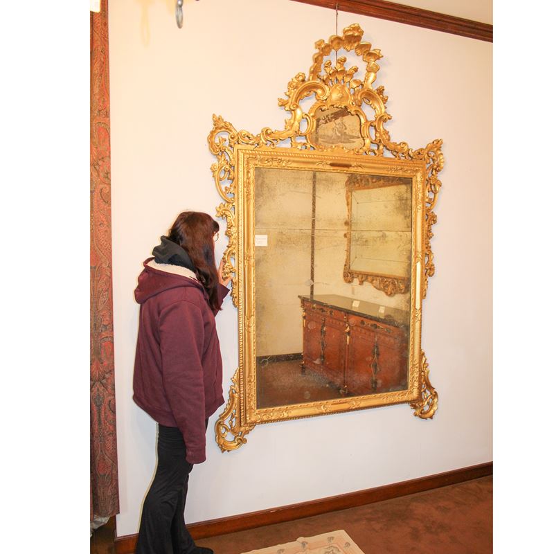 ♦ Grande specchiera in legno dorato, Italia, XX sec.