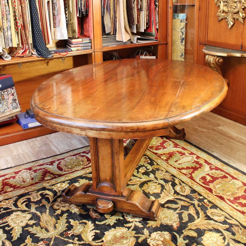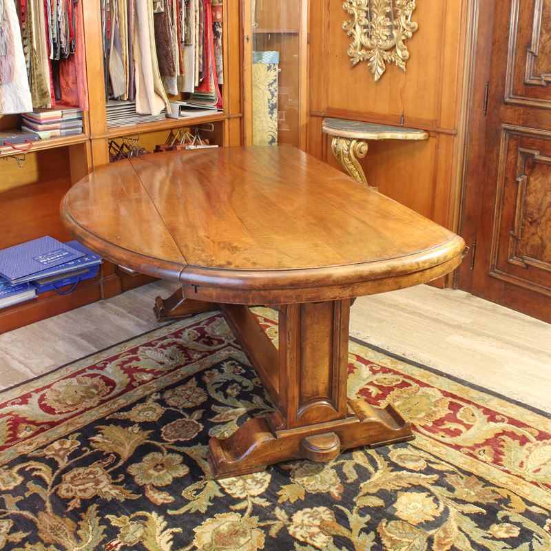 ♦ Grande tavolo a bandelle in legno tinto noce, Italia, XX sec.