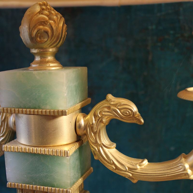 Lampada da tavolo in bronzo e quarzo verde, Italia, XX sec.