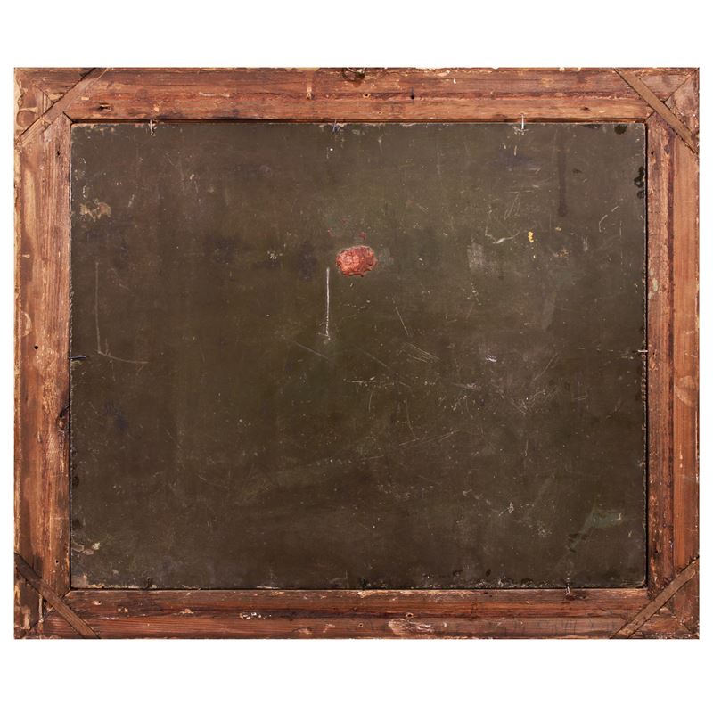 "Paesaggio con personaggi" olio su rame, entro cornice in legno dorato