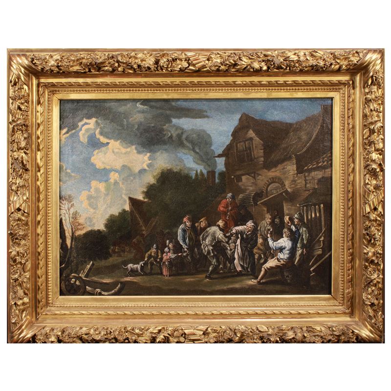 "Scena di genere", olio su tela, entro cornice in legno dorato