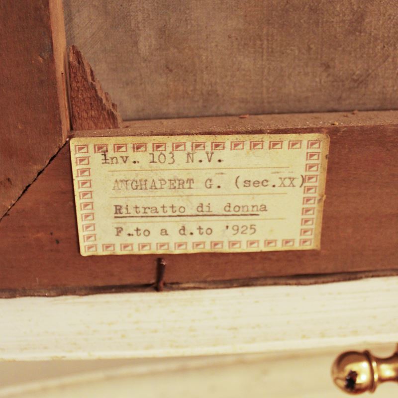 "Ritratto di donna", olio su tela, firmato e datato "G. Anghapert 925" in basso a destra, entro cornice in legno laccato e dorato