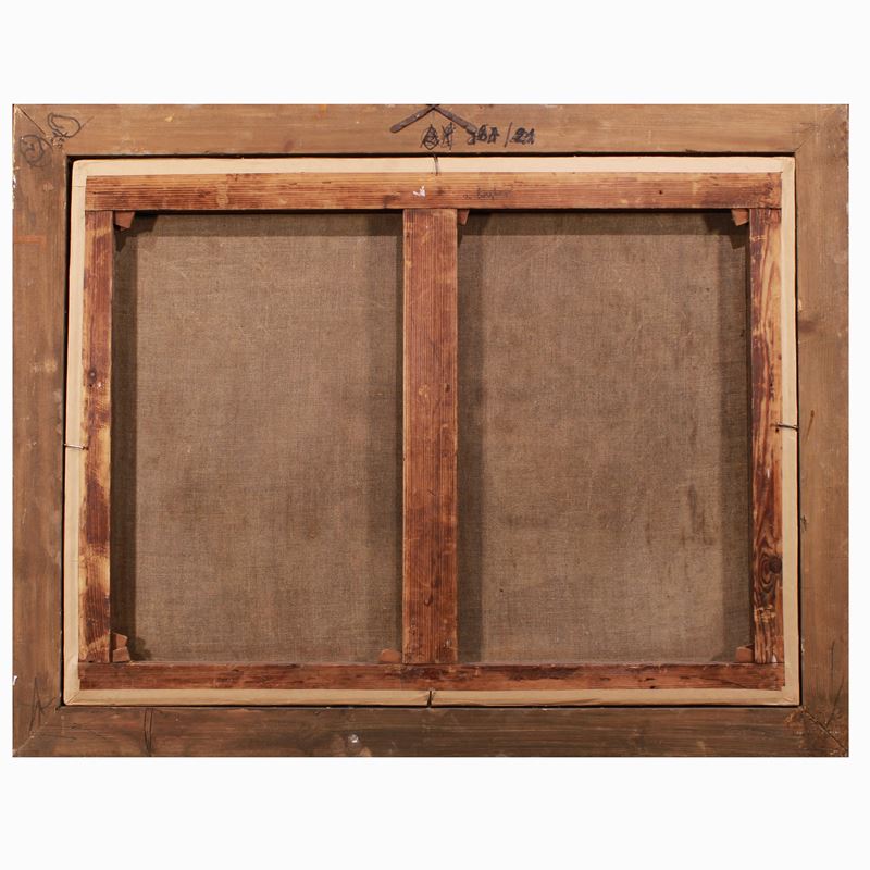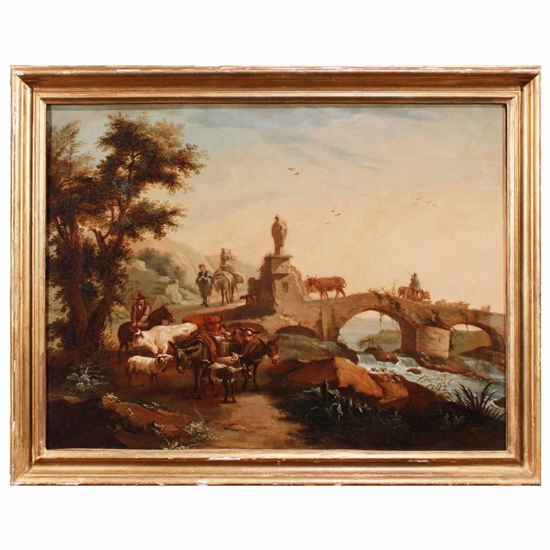 "Paesaggio con armenti", olio su tela, entro cornice in legno dorato