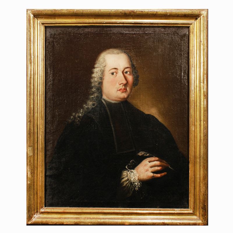 "Ritratto di prelato", olio su tela, entro cornice in legno dorato