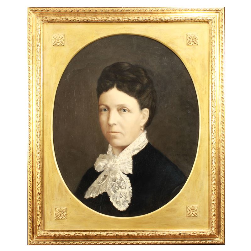 "Ritratto di nobildonna", olio su tela, entro cornice in legno dorato