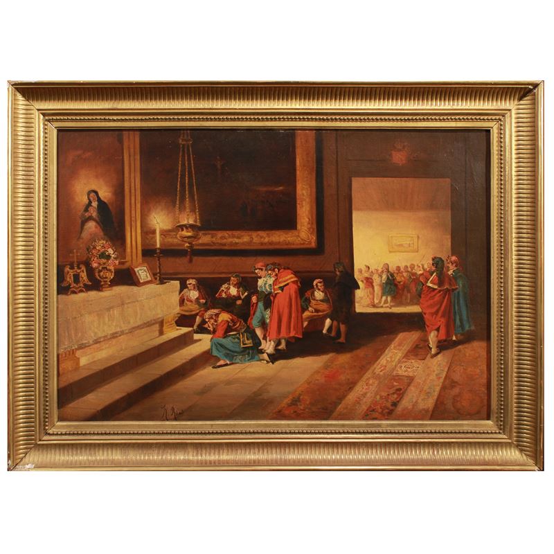 "La preghiera del torero", olio su tela, entro cornice in legno dorato