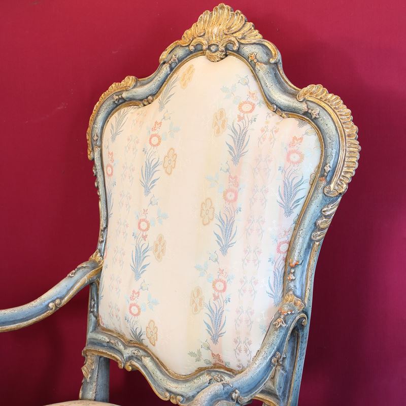 ♦ Poltrona in legno laccato e dorato, Italia, XX sec.