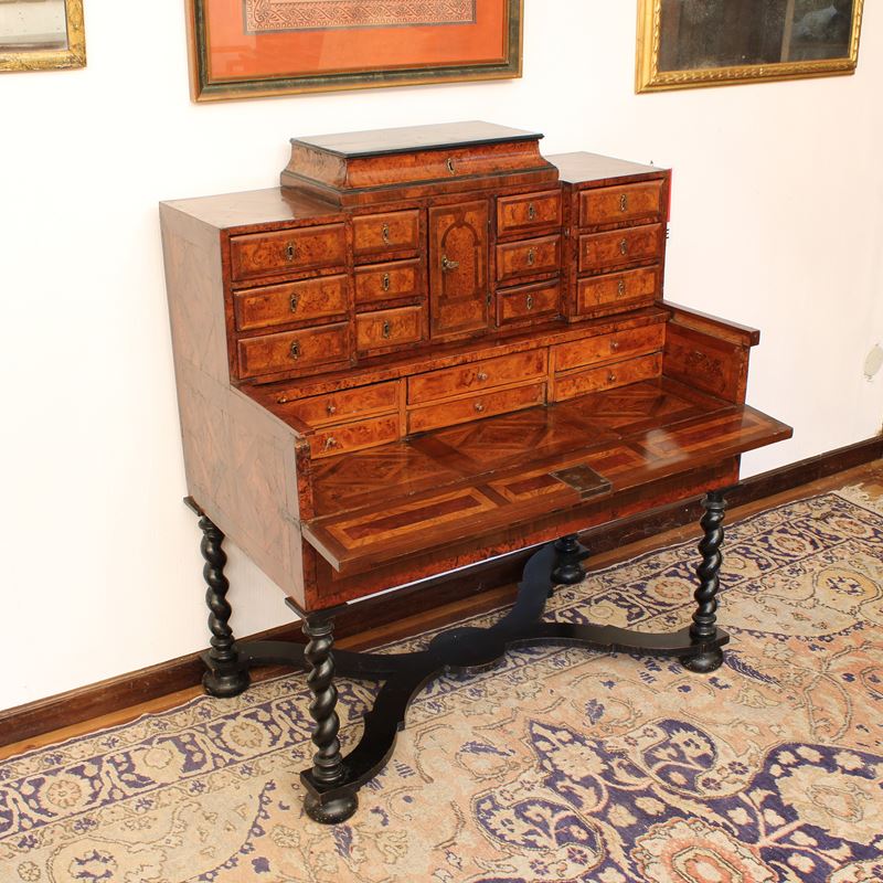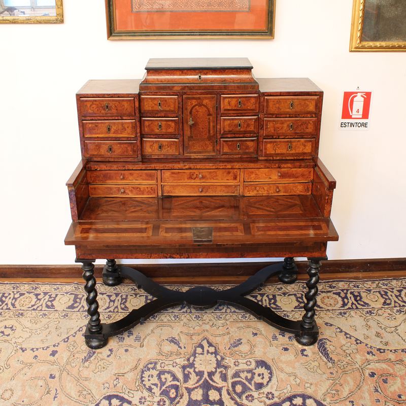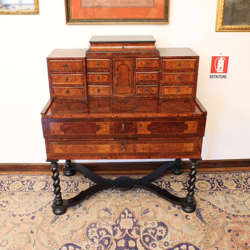 Scrittoio in radica, noce e legno ebanizzato, Italia, XVIII sec.