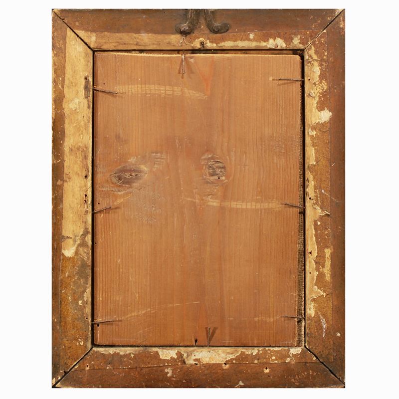 "Madonna con bambino", olio su tela, entro cornice in legno dorato e laccato