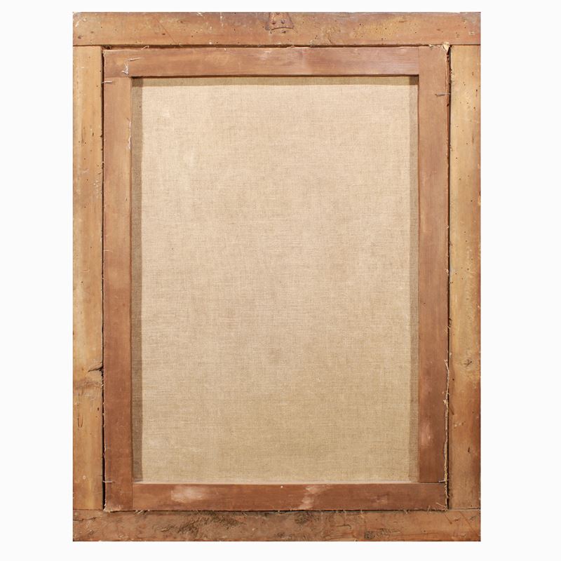 "Angelo custode", olio su tela, entro cornice in legno dorato