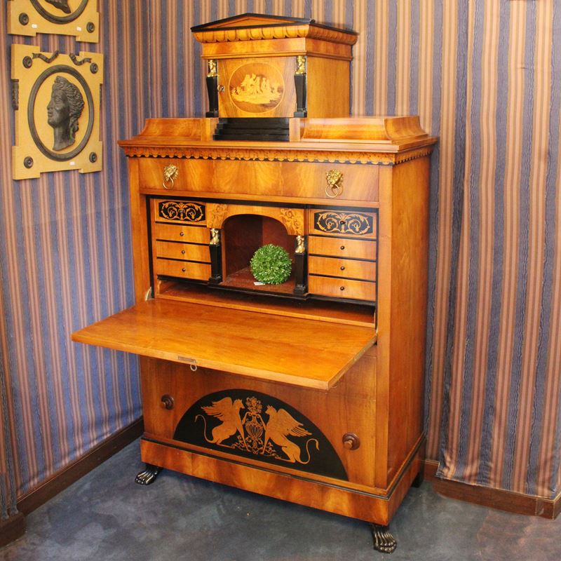 ♦ Secretaire in mogano sbiancato, Italia, XX sec.