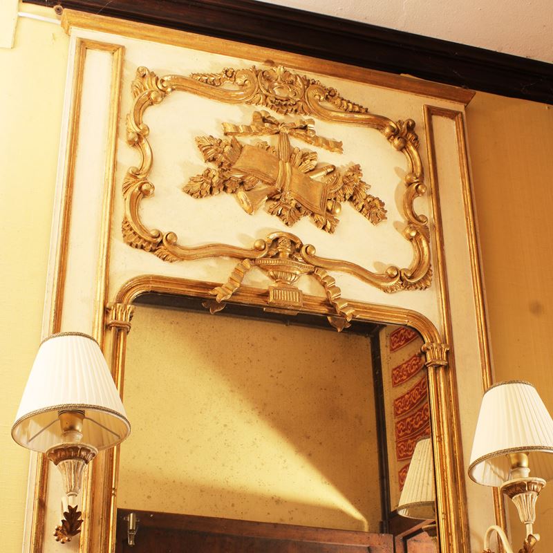 cornice rettangolare decorata con motivi vegetali, di volute ed un trionfo musicale, completa di due appliques in ferro forgiato e laccato