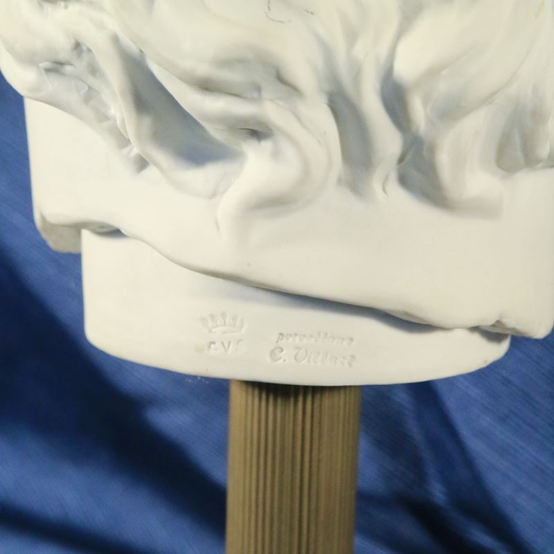 raffigurante un volto maschile, poggiante su base in porcellana dorata decorata con motivi Impero, firmata "Villani- Capodimonte"