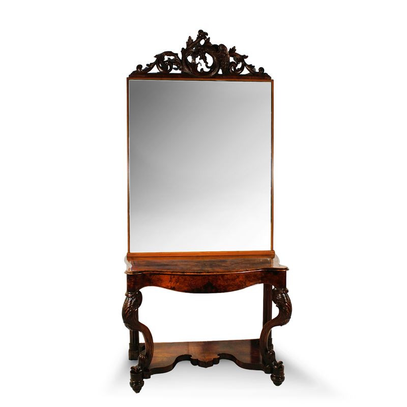 Consolle con specchiera in noce, periodo Luigi Filippo