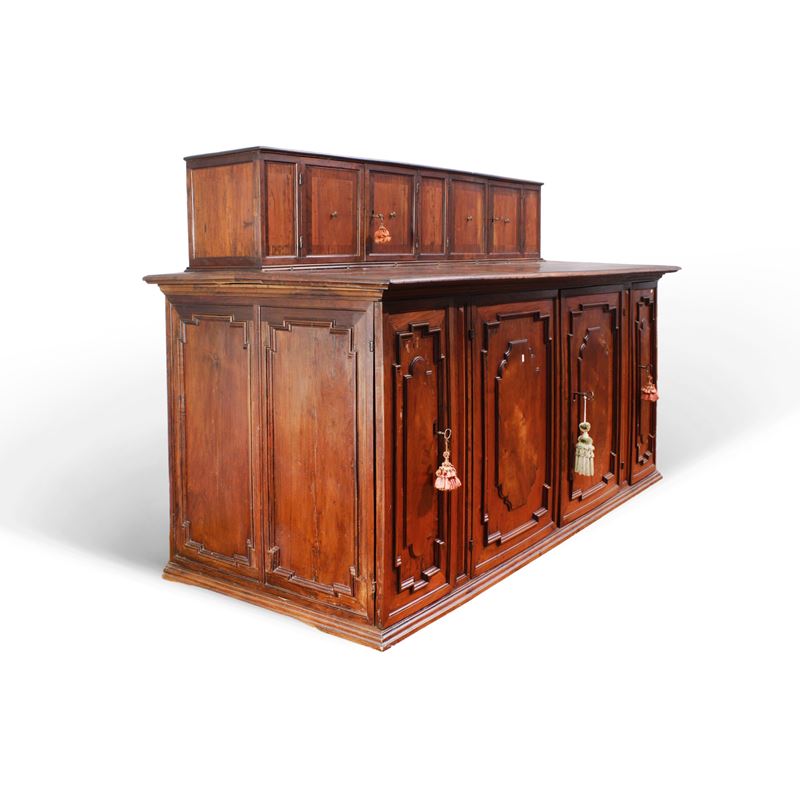 corpo inferiore a quattro ante bugnate, alzata superiore con sei sportelli