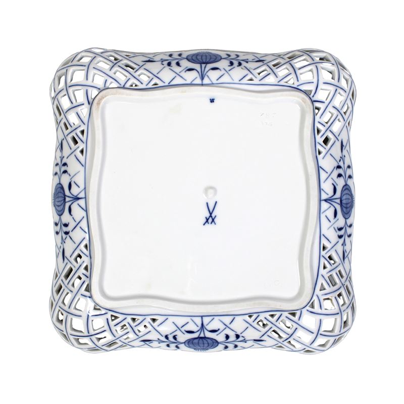 in porcellana bianca con decoro "a cipolla" in blu, marchio della produzione