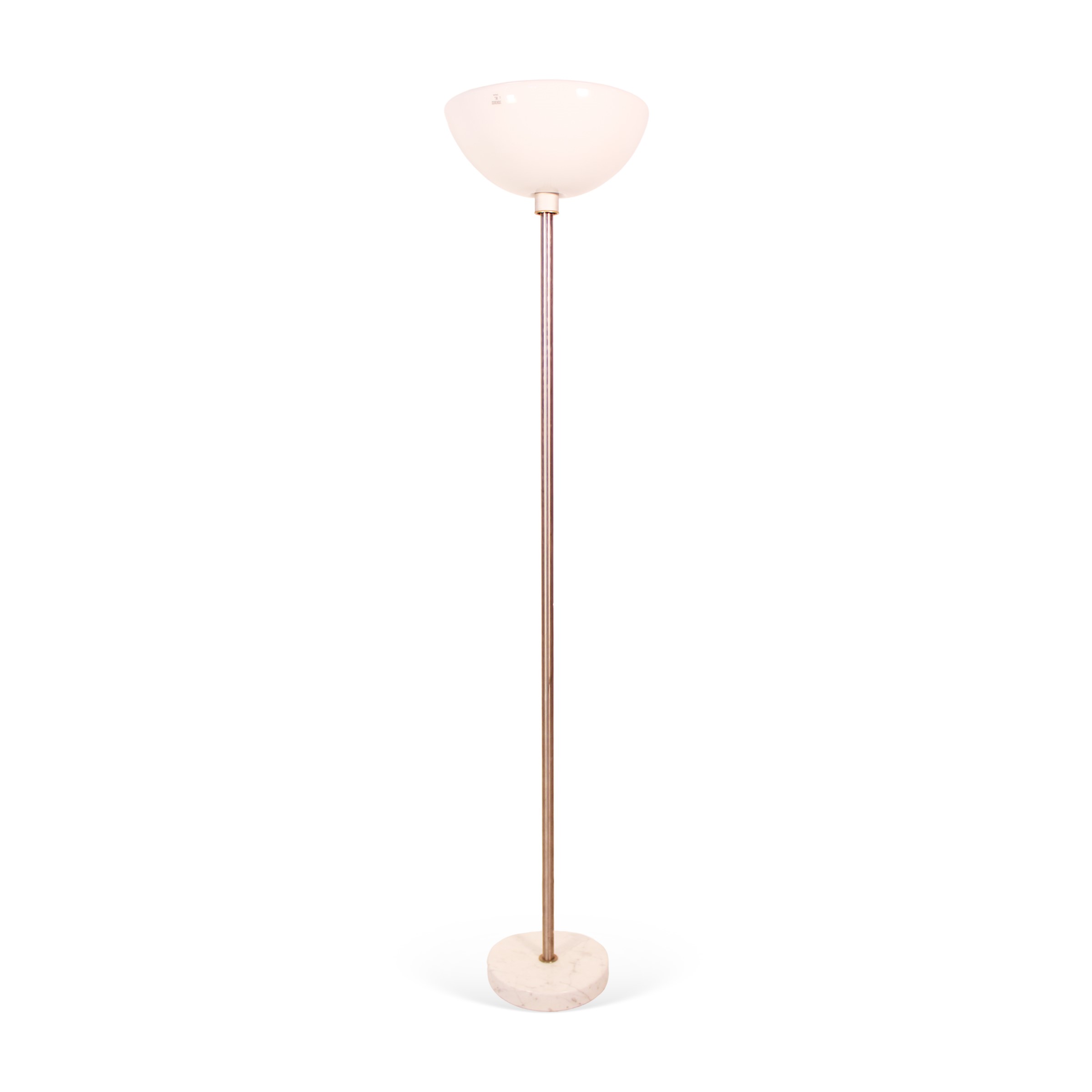 lampada da terra mod. Papavero, struttura in acciaio e vetro opalino