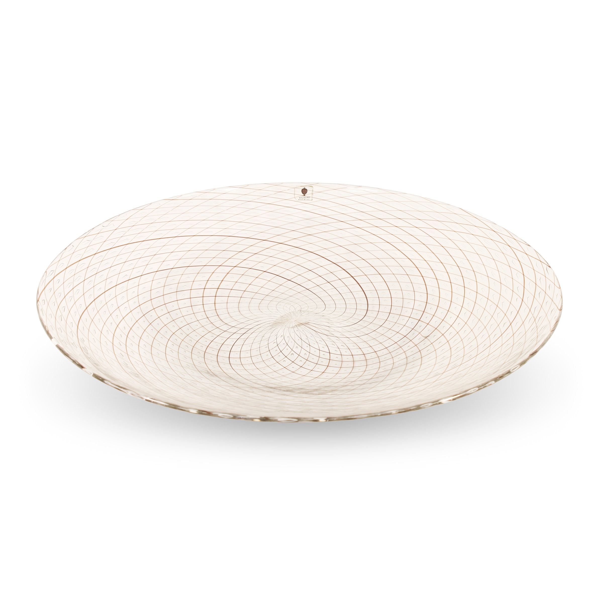 piatto in vetro con tecnica a reticello, etichetta e firma a punta Venini Italia '80.
