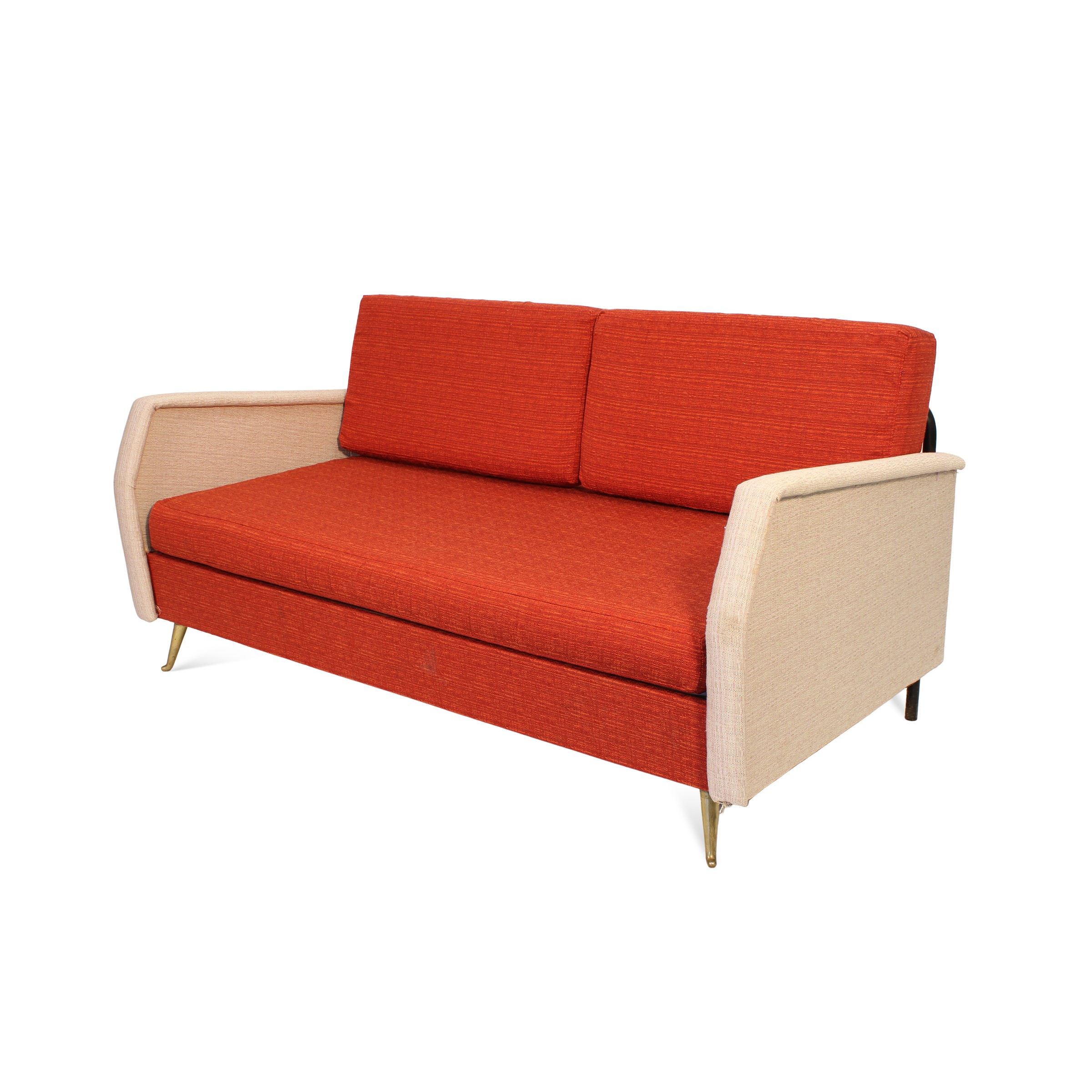 divano in tessuto rosso e crema