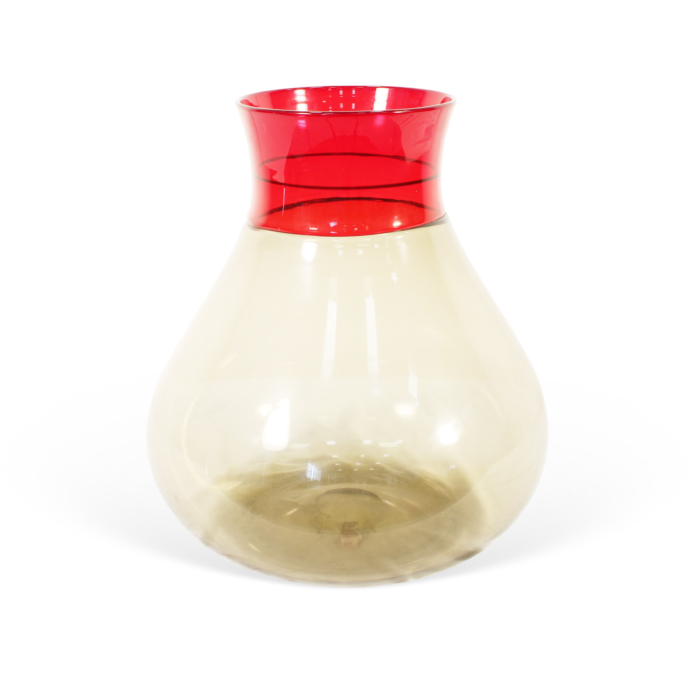 vaso modello "Colletti" in vetro brunito a incalmo rosso, firma a punta Venini Italia.