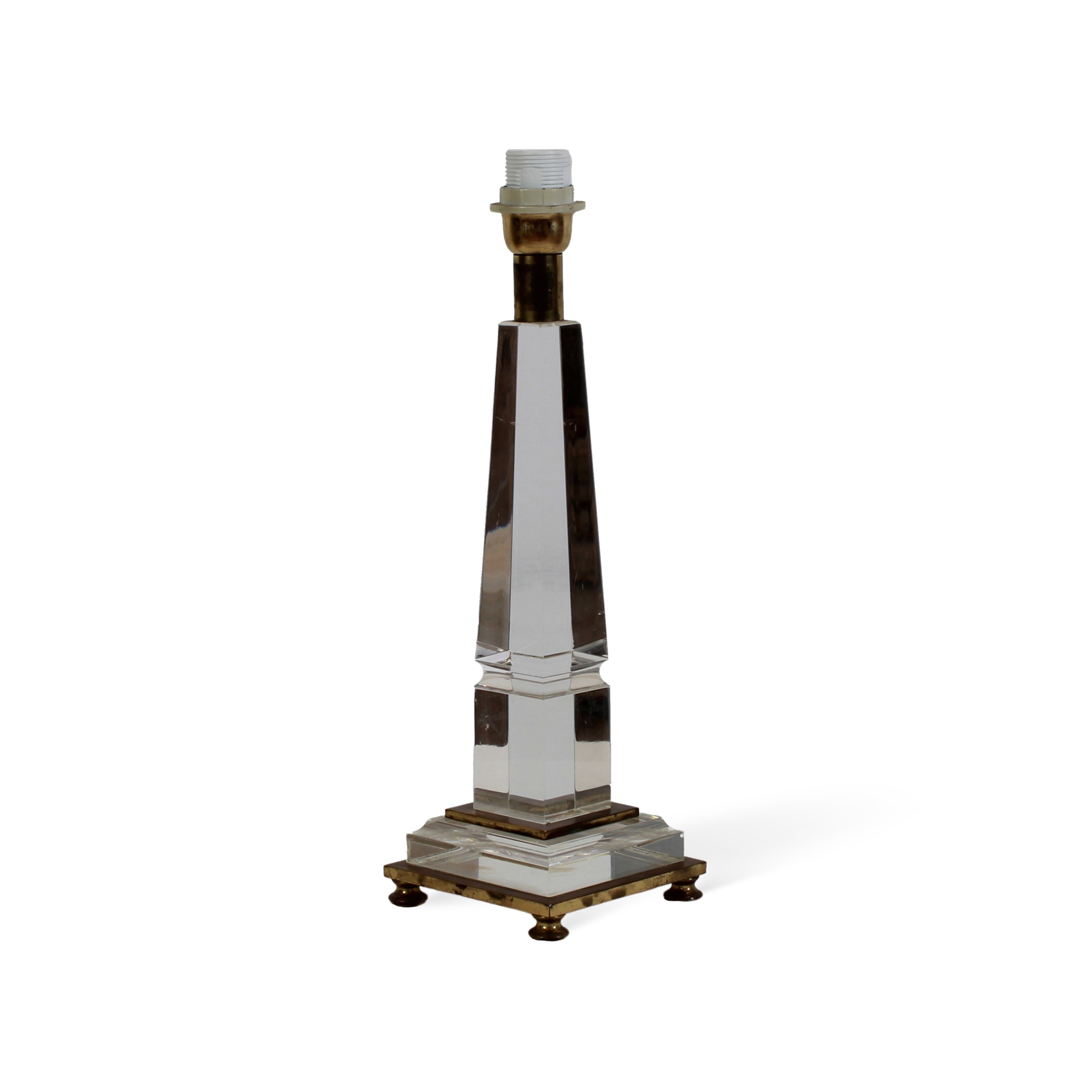 lampada da tavolo ad obelisco in plexiglas e ottone