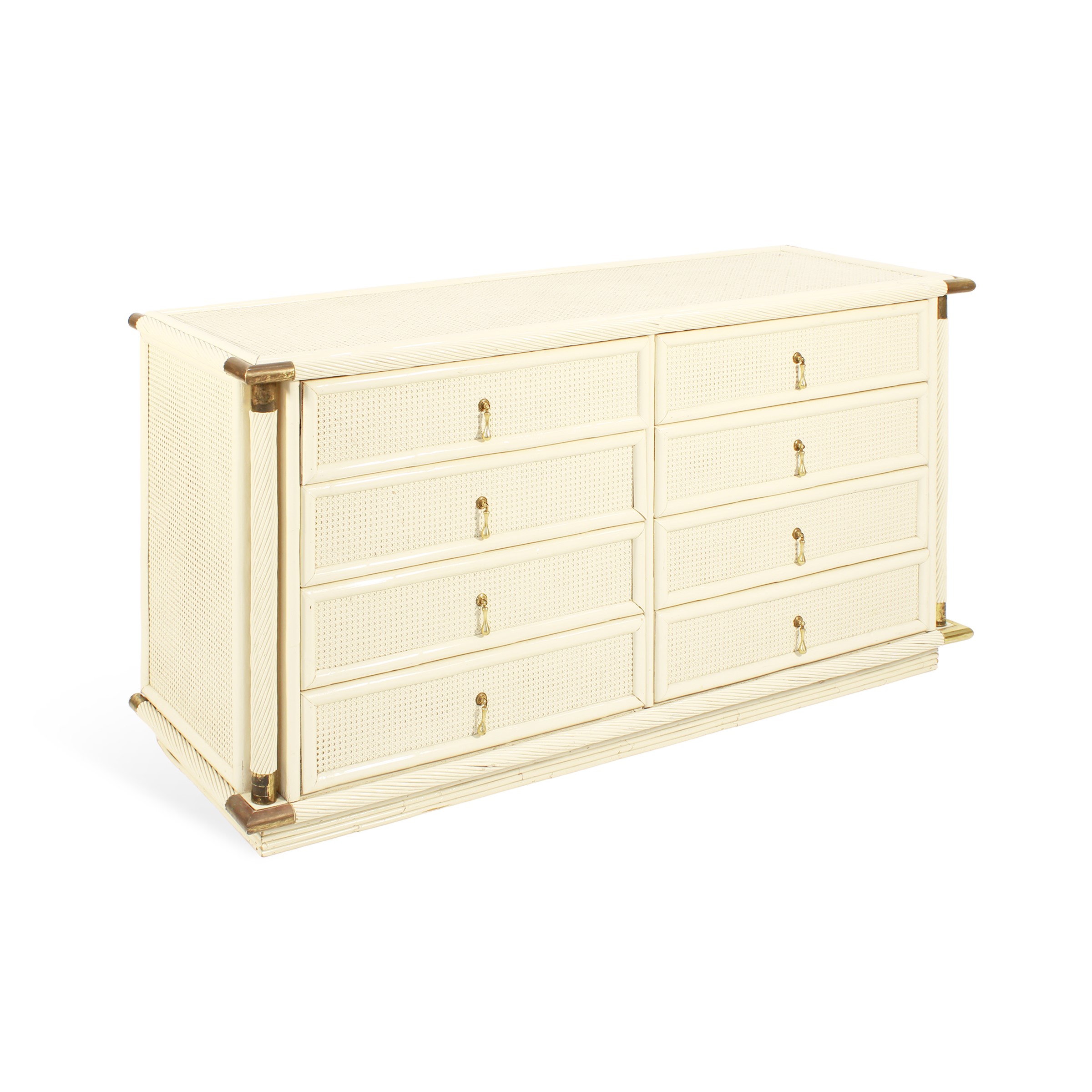 cassettiera in paglia di Vienna e ottone