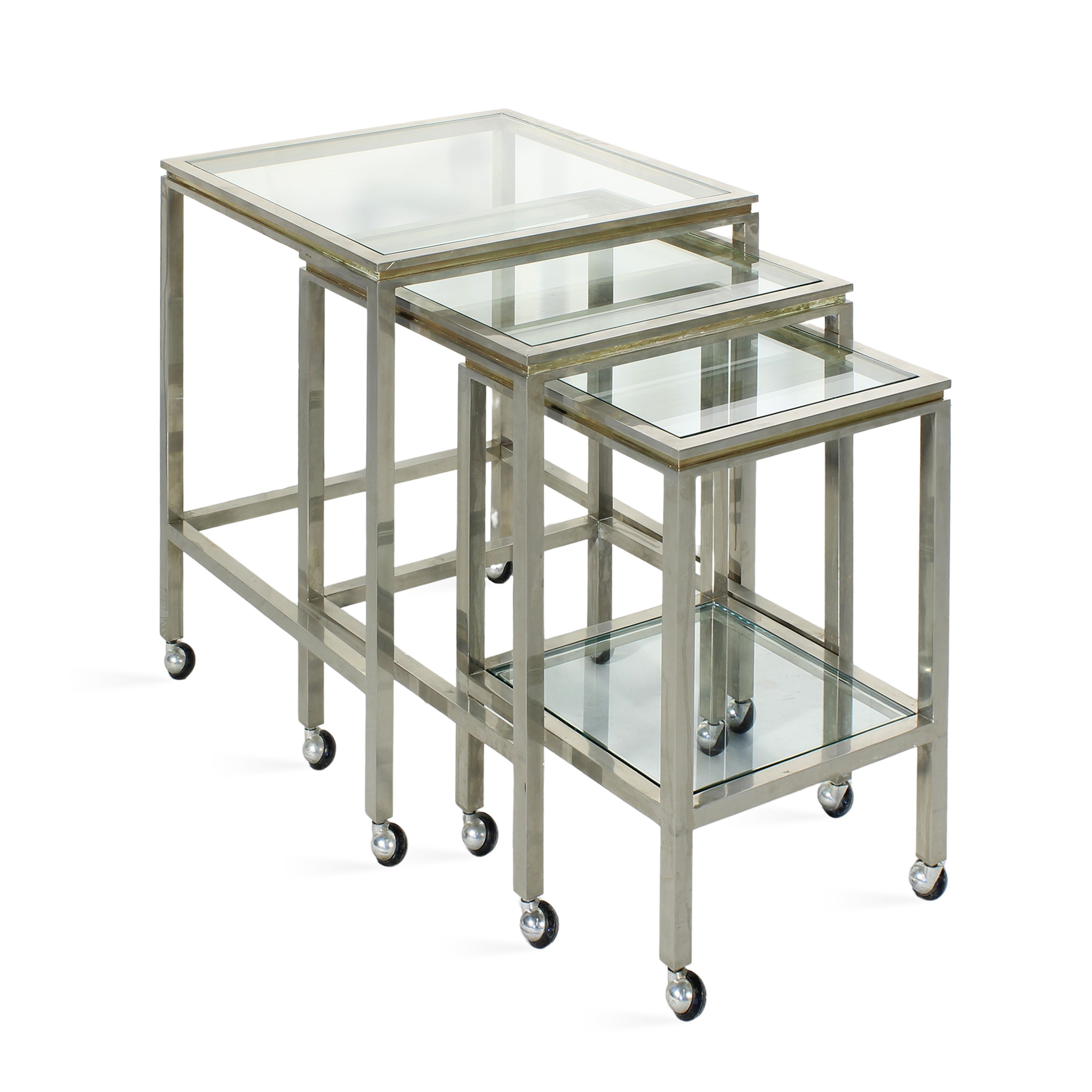 tre carrelli impilabili in ottone cromato, ottone e vetro