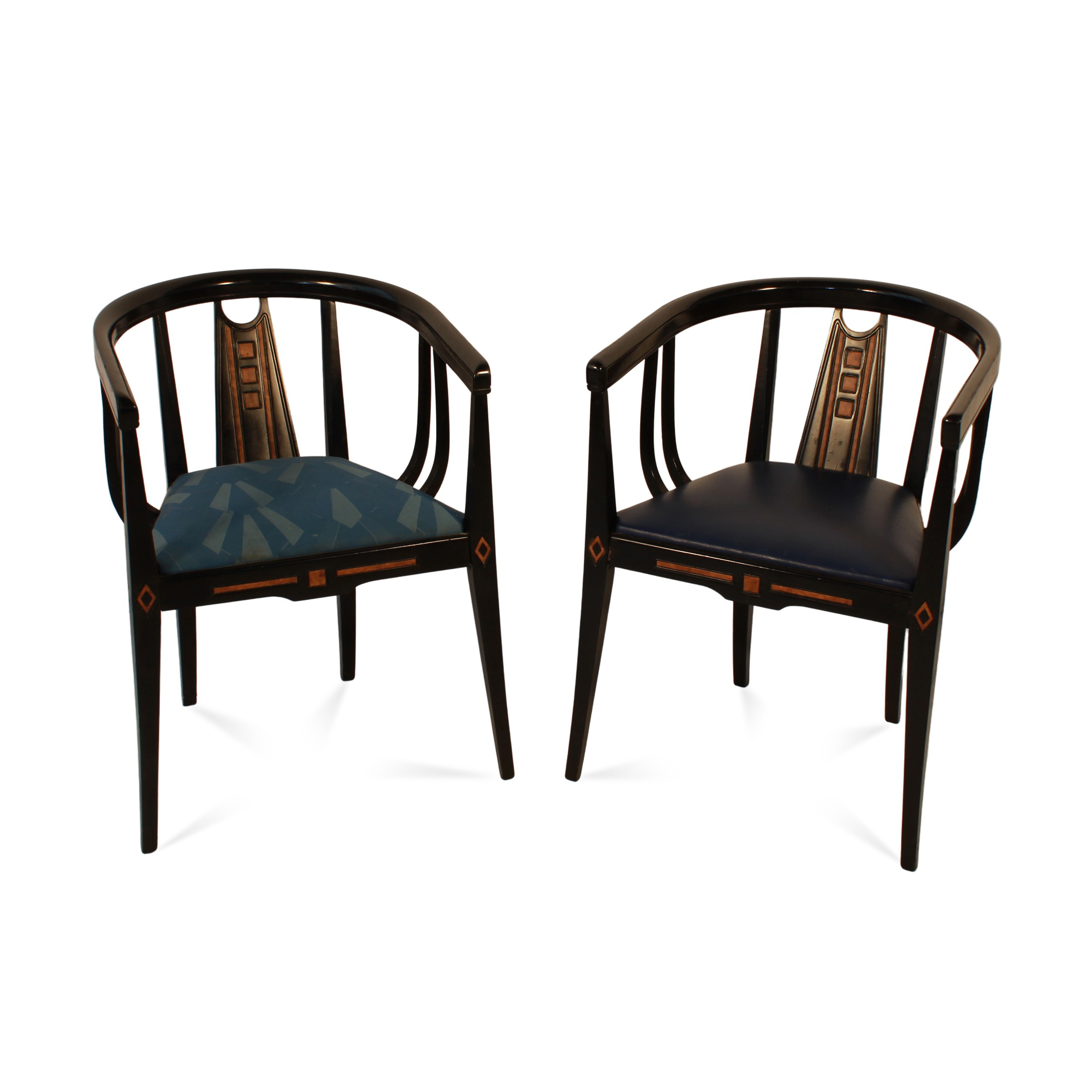 due sedie in legno: una con seduta in tessuto, una con seduta in ecopelle
