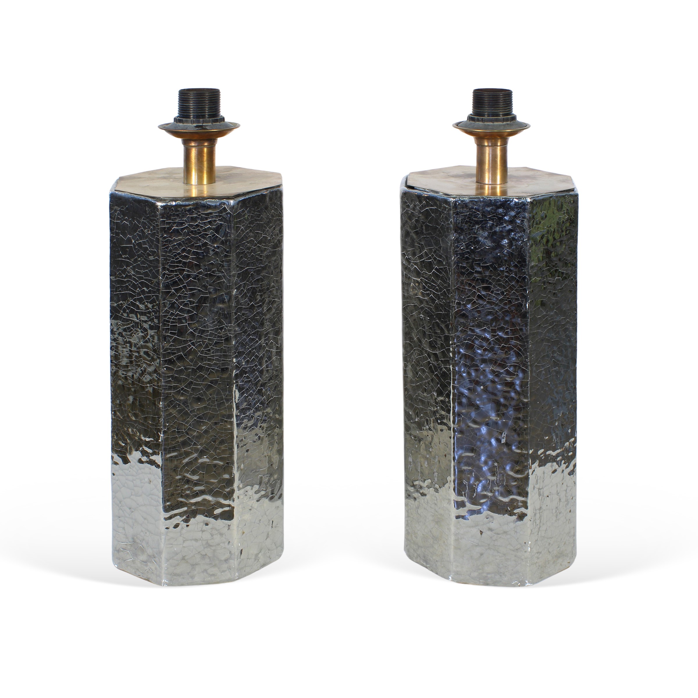 coppia di lampade da tavolo in ceramica con montatura in acciaio