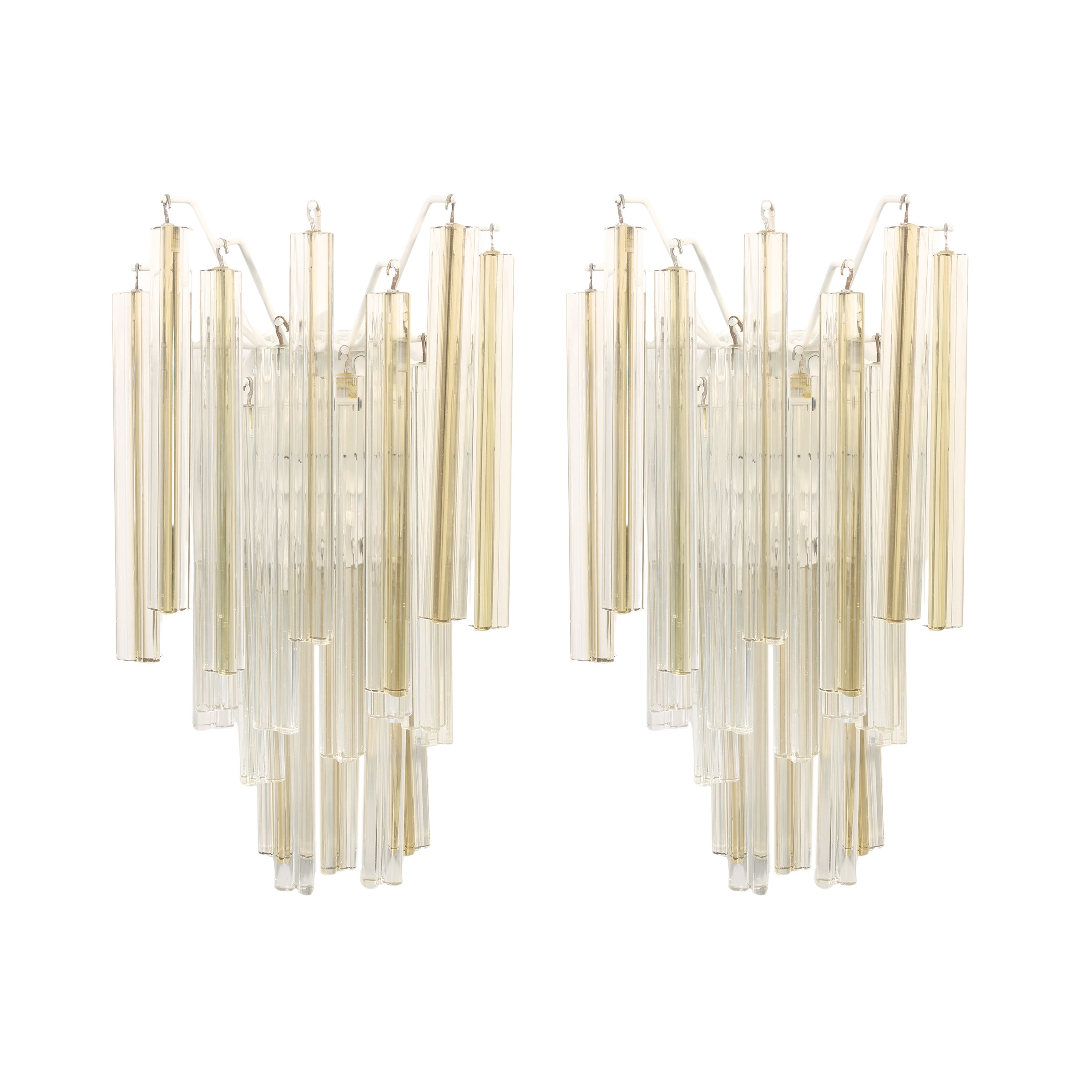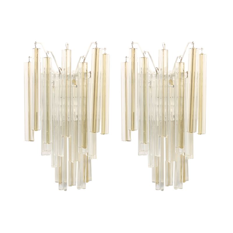 coppia di applique mod. Trilobo in metallo e vetro di Murano.
