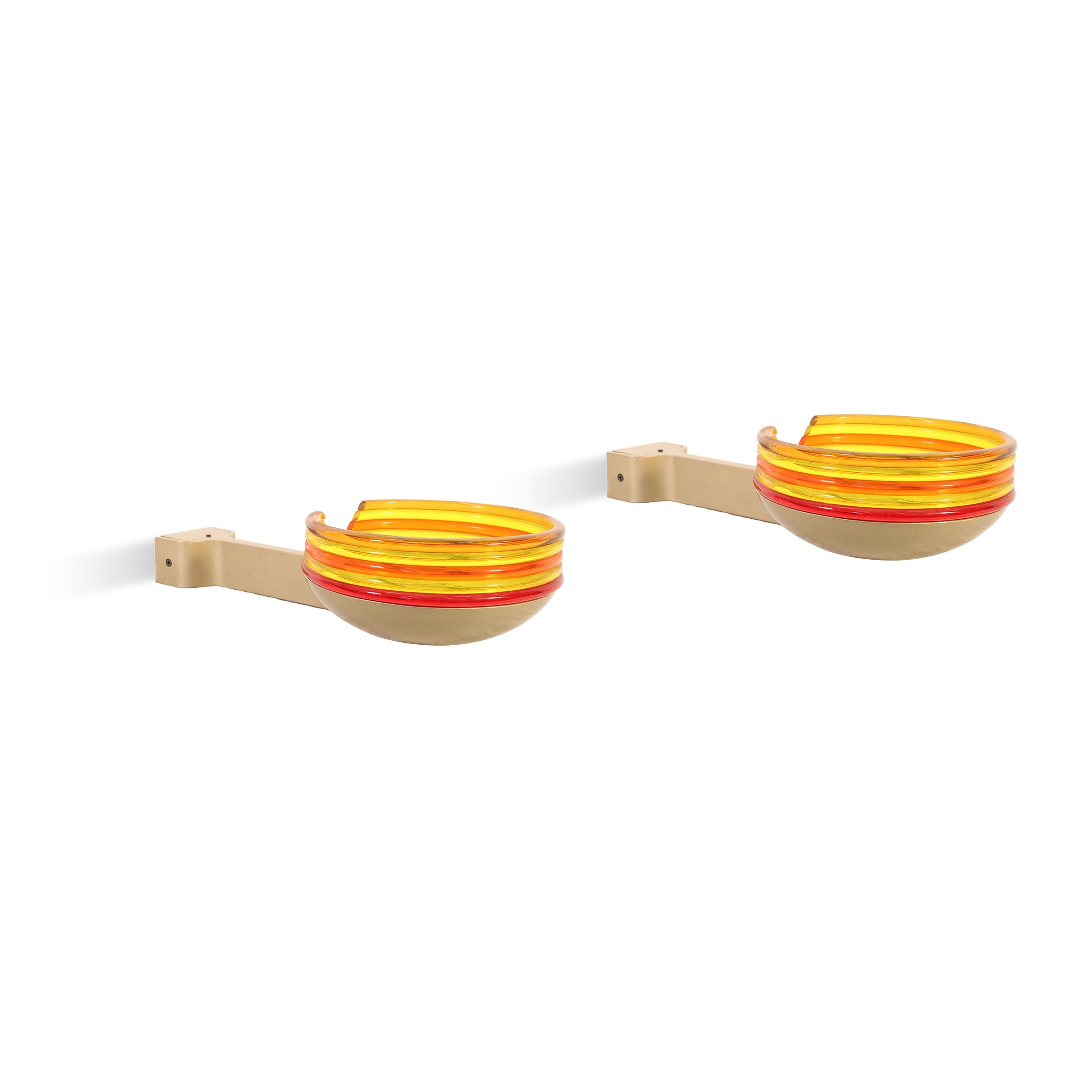 coppia di appliques modello "Febo" in acciaio e vetro colorato.