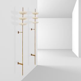 coppia di lampade da parete, ottone e metallo verniciato, etichetta della produzione.