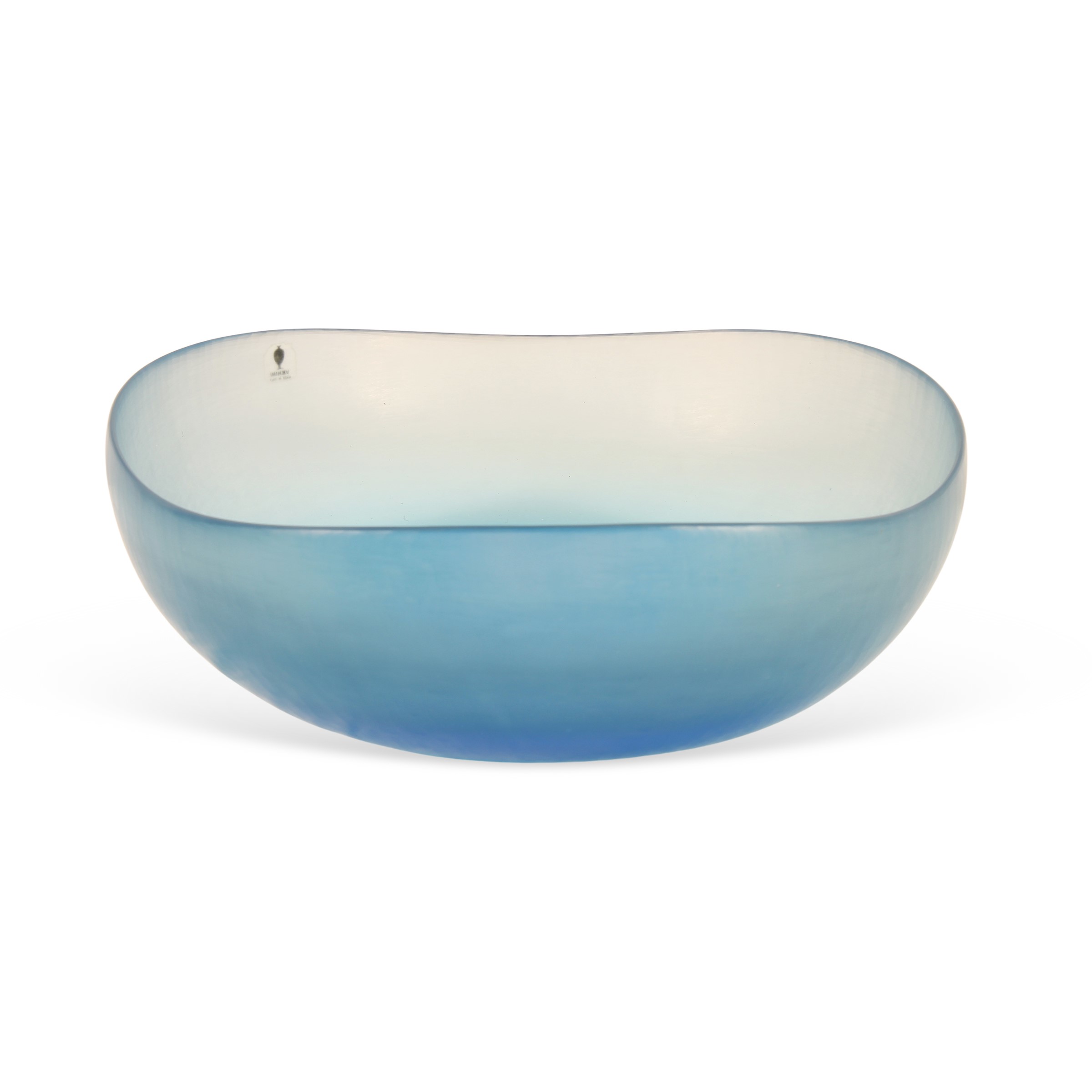 bowl in vetro blu, firma incisa a punta "Venini Italia '80"