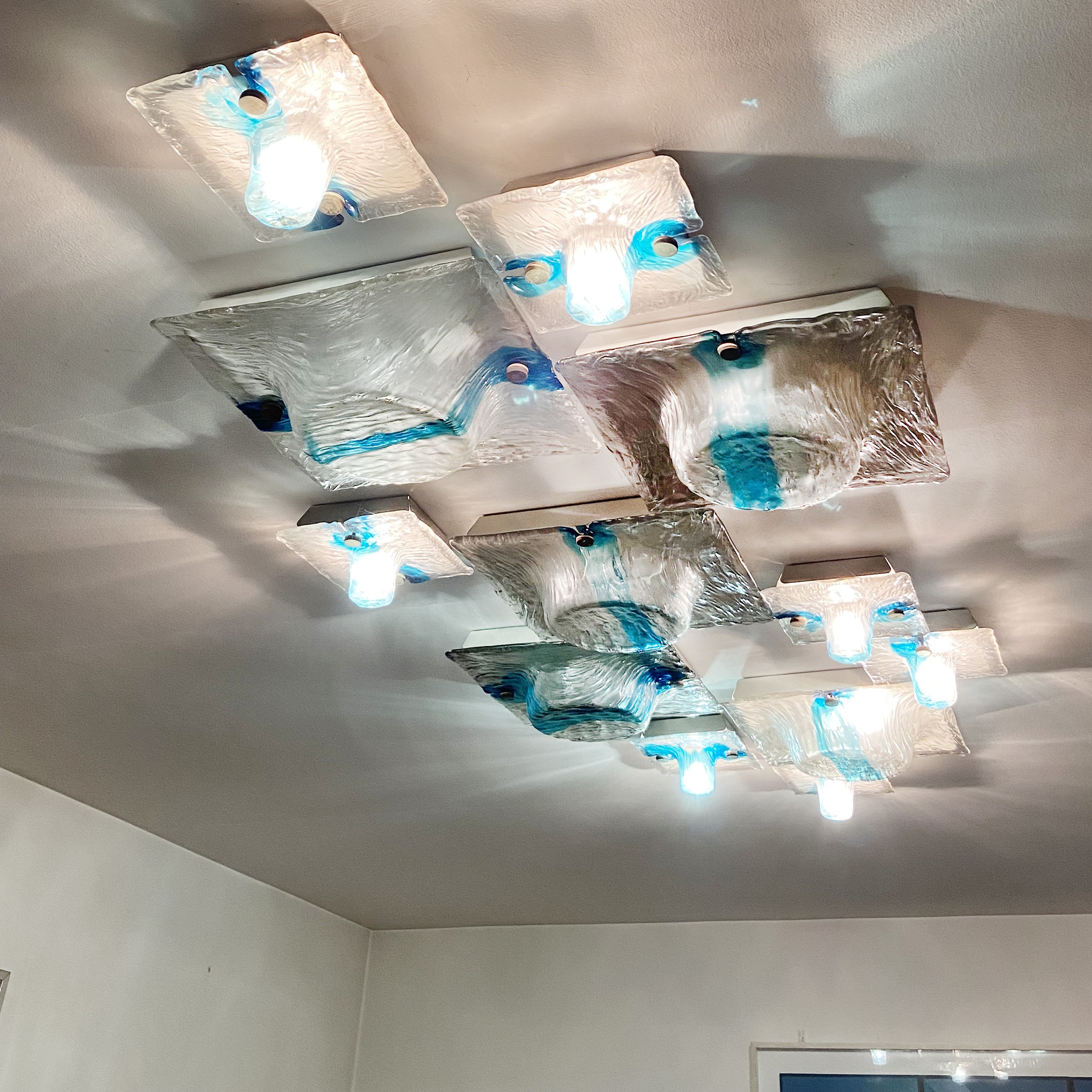 dodici lampade da parete mod. Quilt, in vetro corteccia con dettagli blu, lievi difetti.
