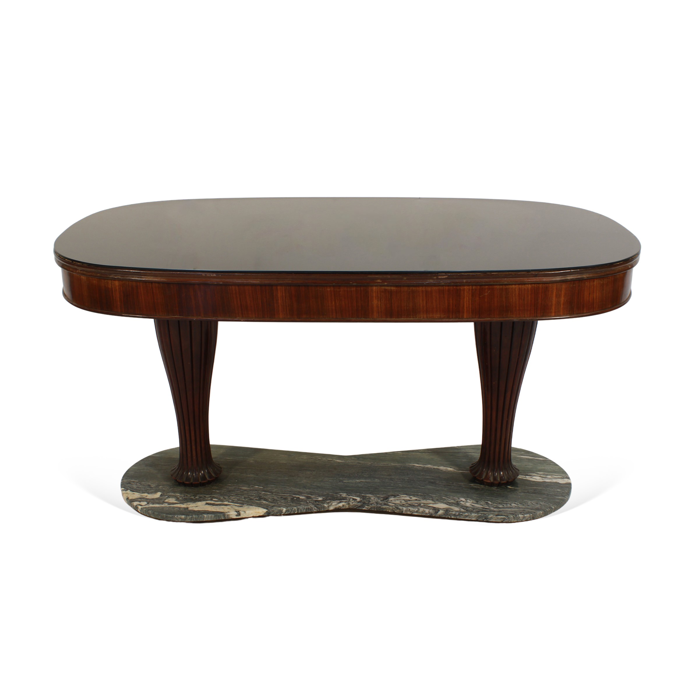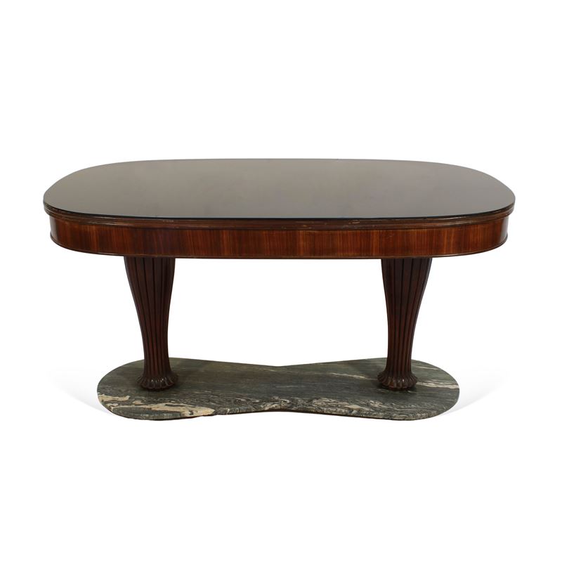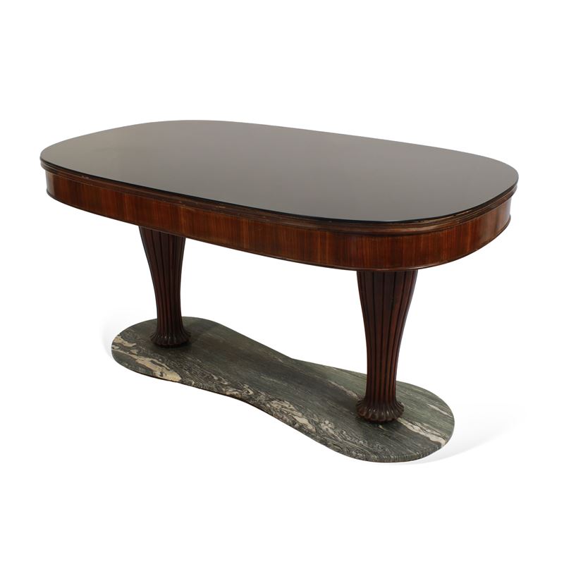 tavolo da pranzo in legno, marmo e vetro.