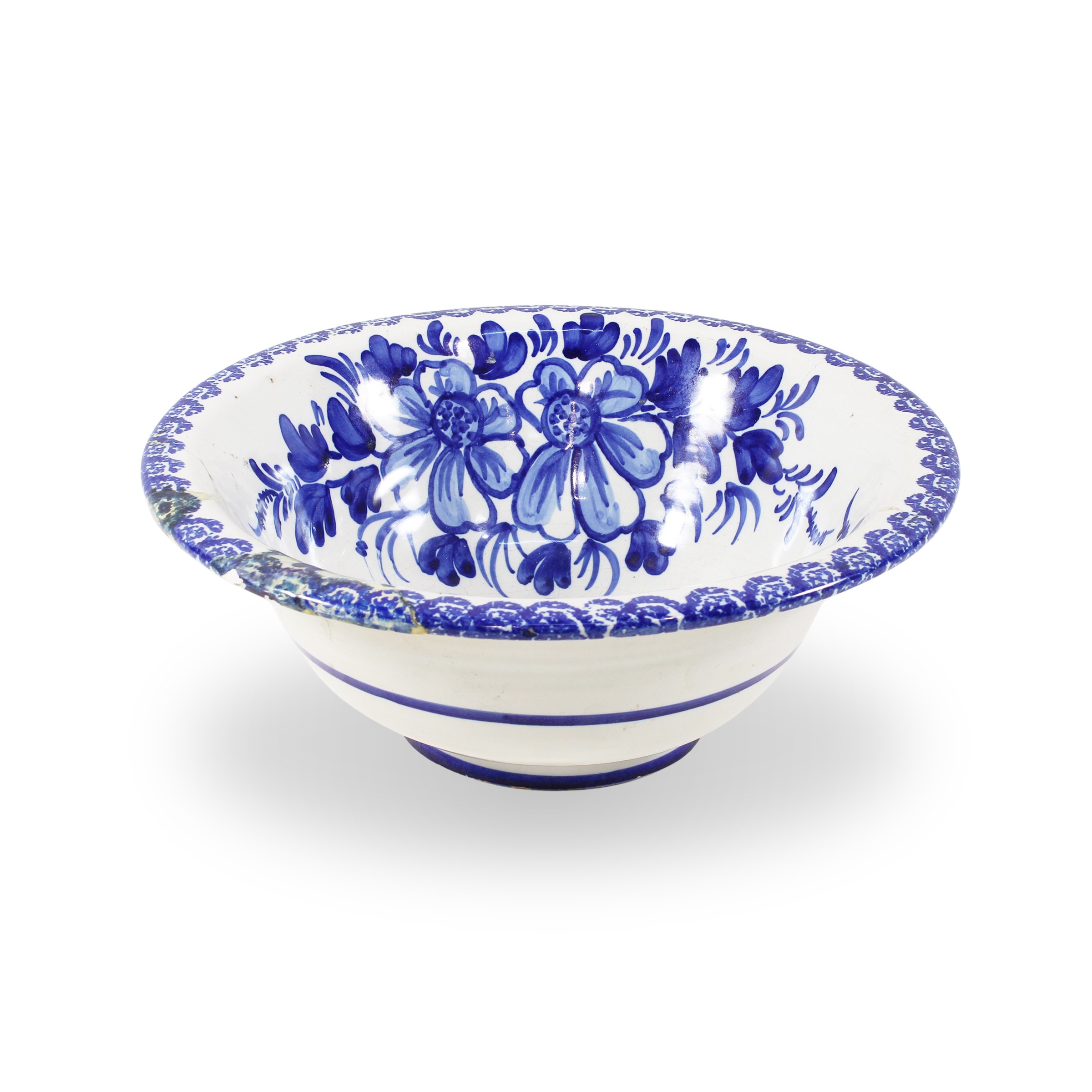 dipinta nella tonalità del blu con motivi floreali e vegetali, difetti