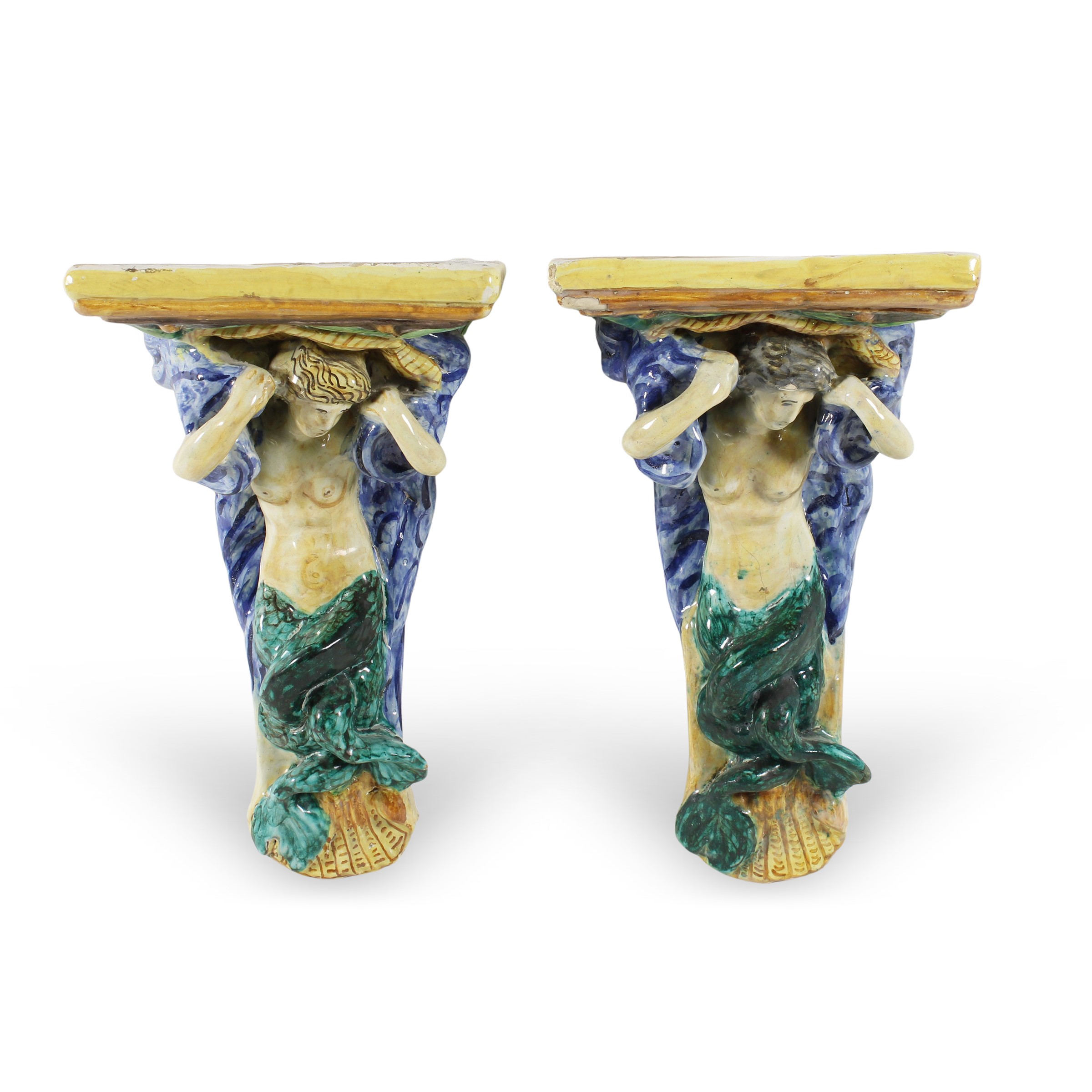 Coppia di mensole in ceramica smaltata, Italia, XIX-XX sec.