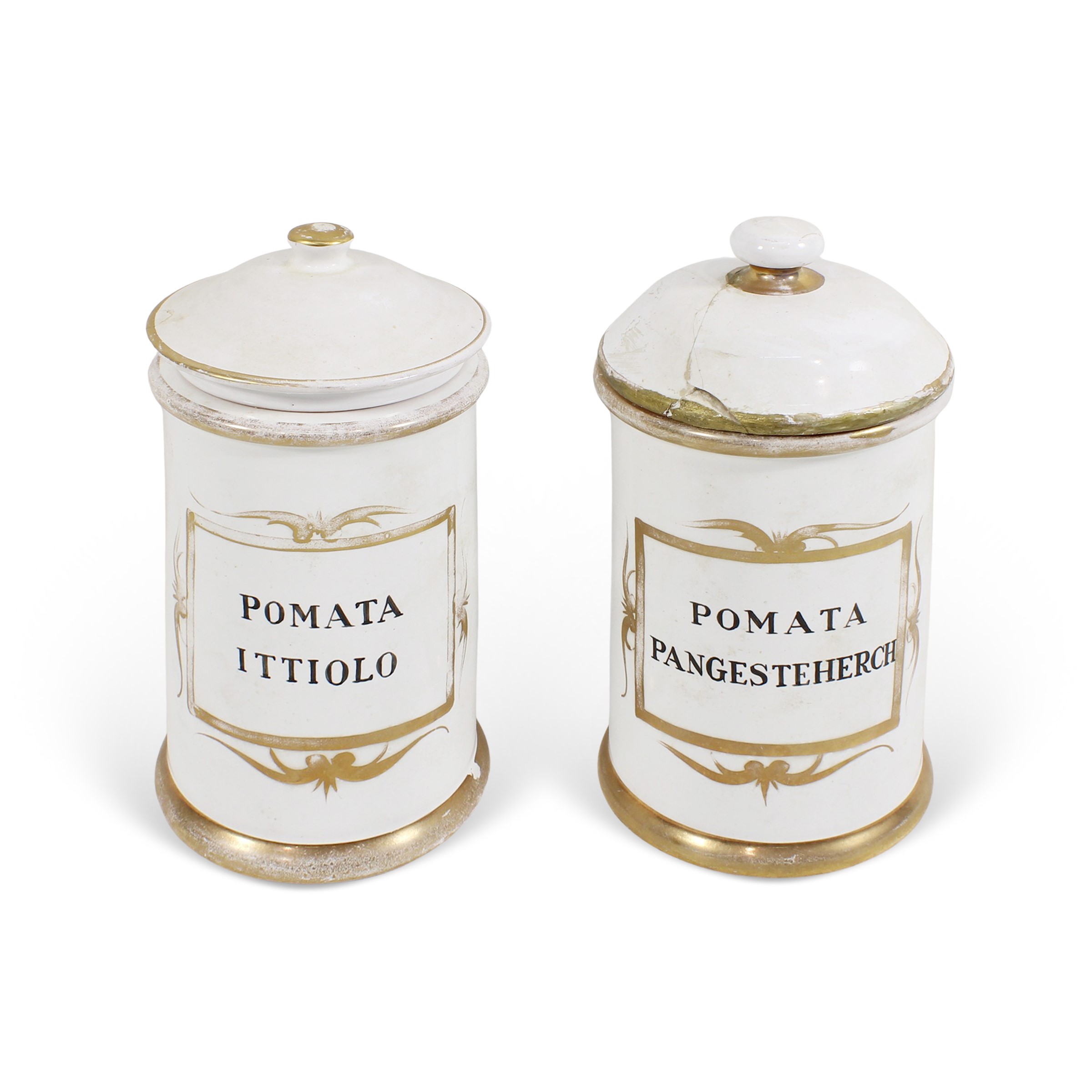 Coppia di vasi da farmacia in ceramica, Italia, XIX-XX sec.