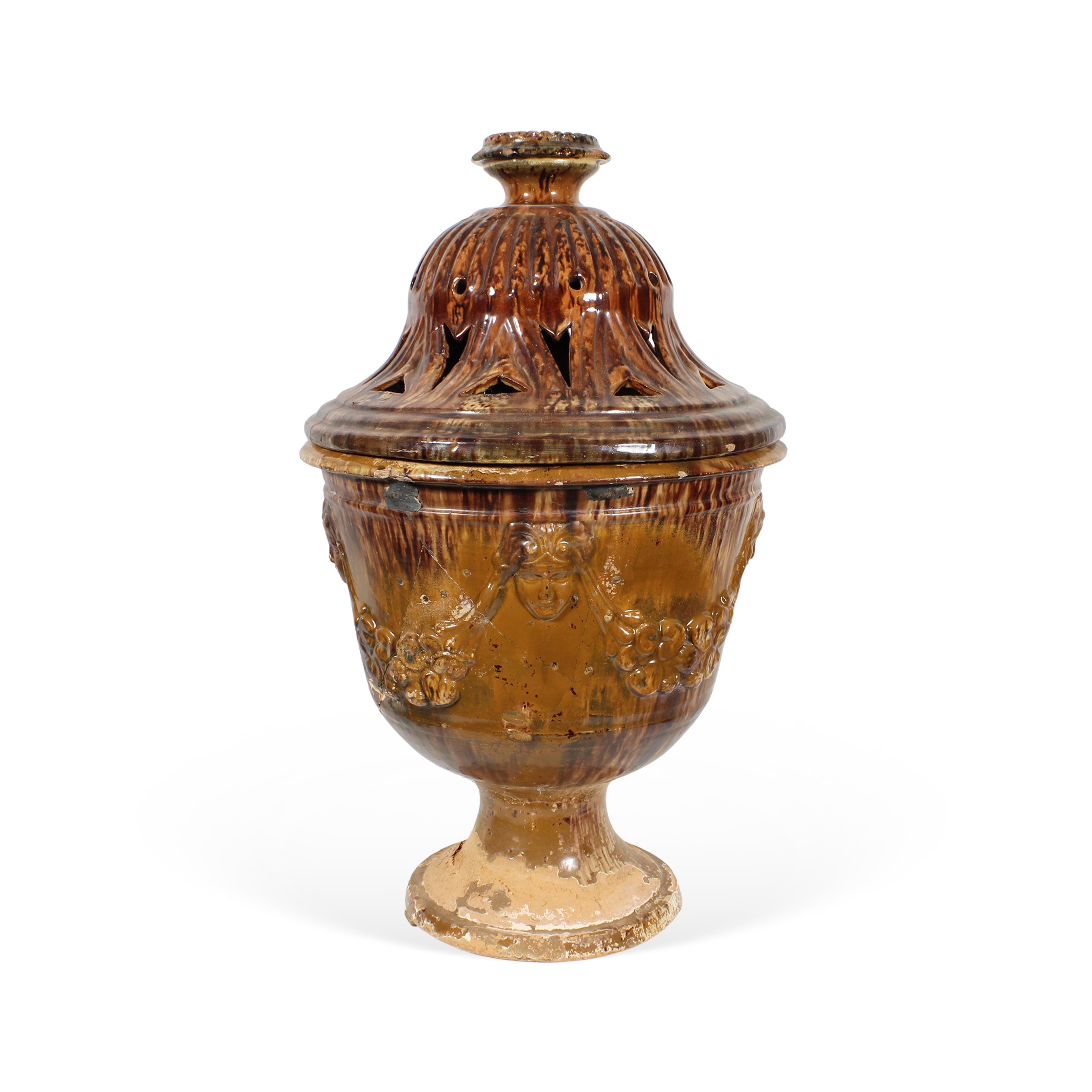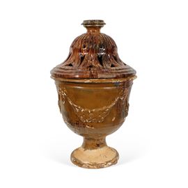 in ceramica invetriata decorata con festoni e mascheroni, difetti e mancanze