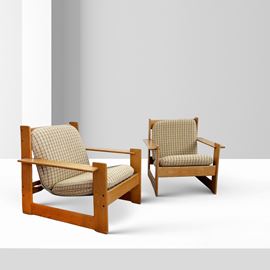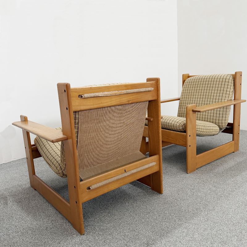 coppia di poltrone prod. Molteni, in legno e tessuto