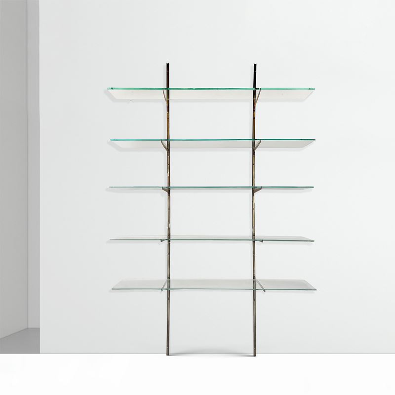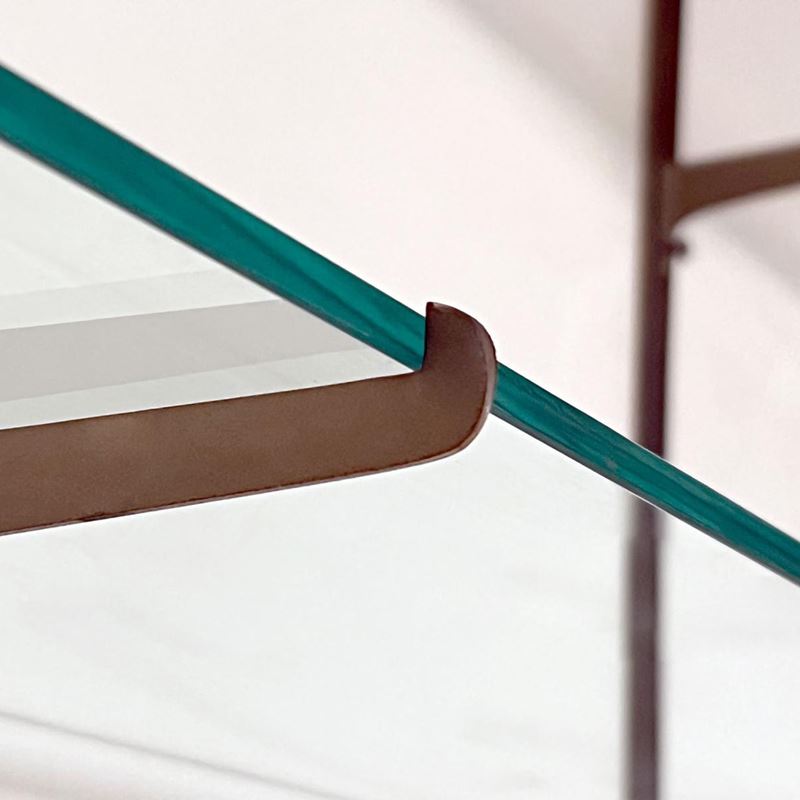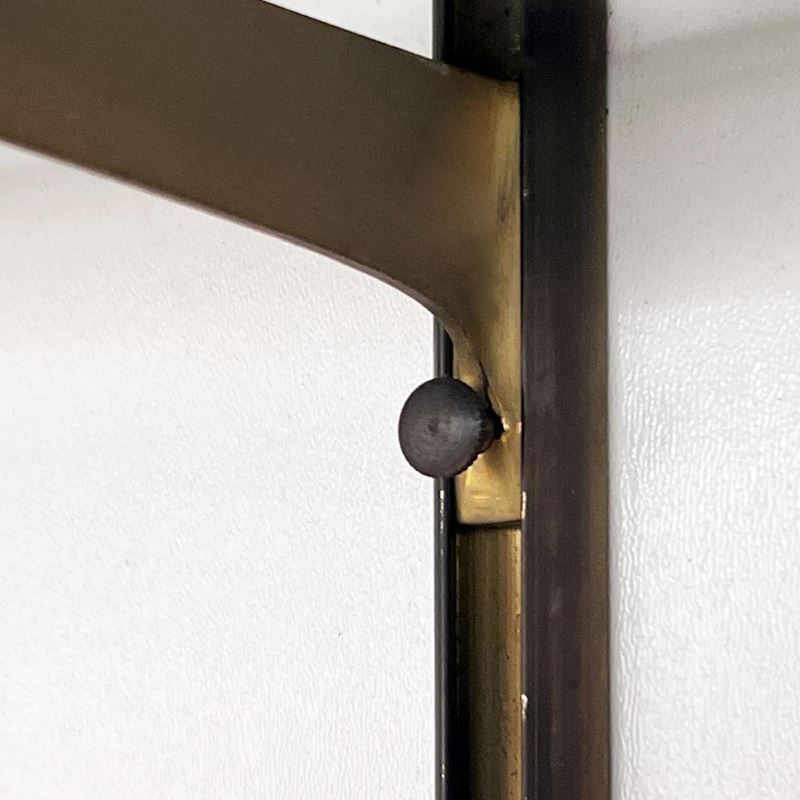 libreria da parete in ottone massiccio e ripiani in vetro