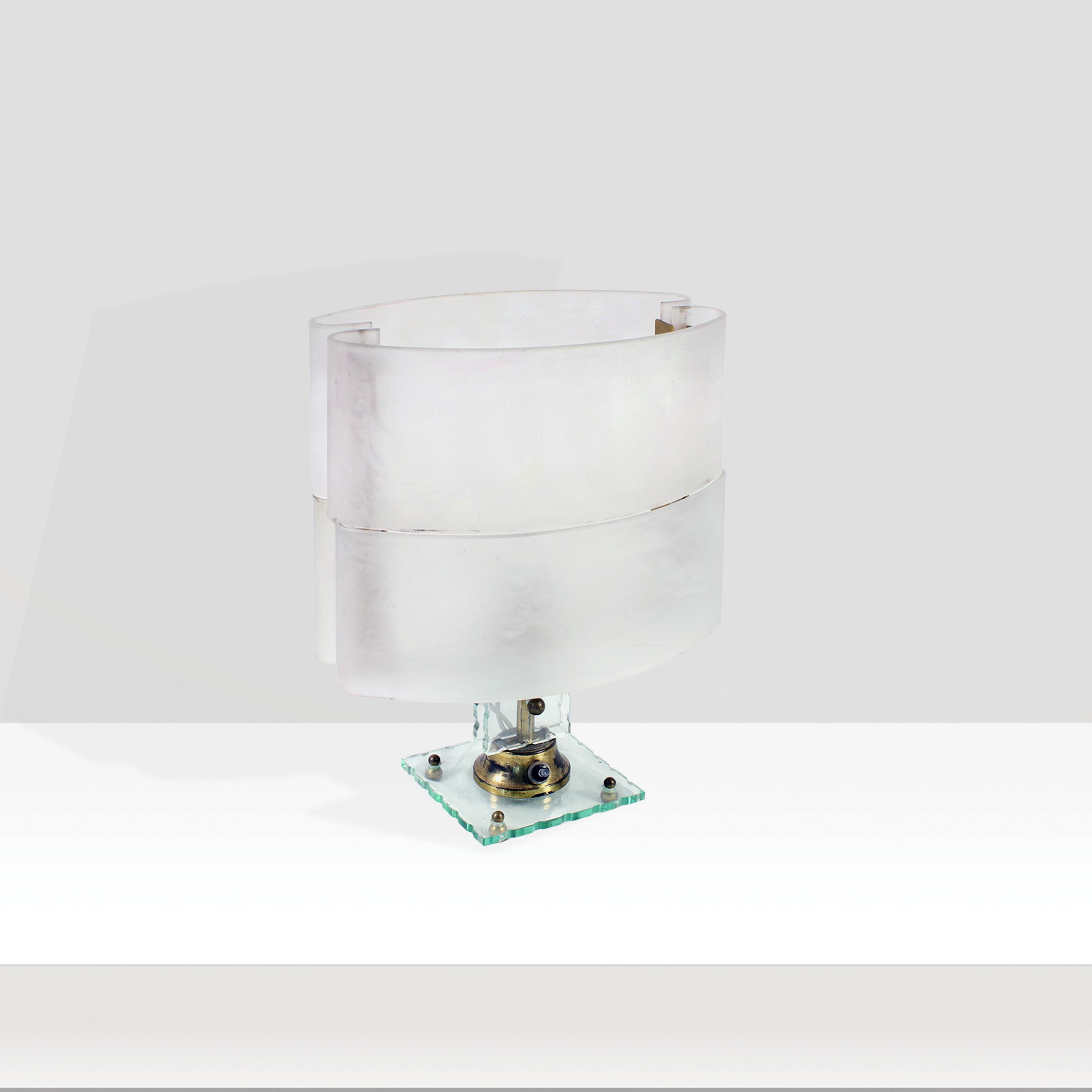 lampada da tavolo in vetro, vetro opalino e ottone.