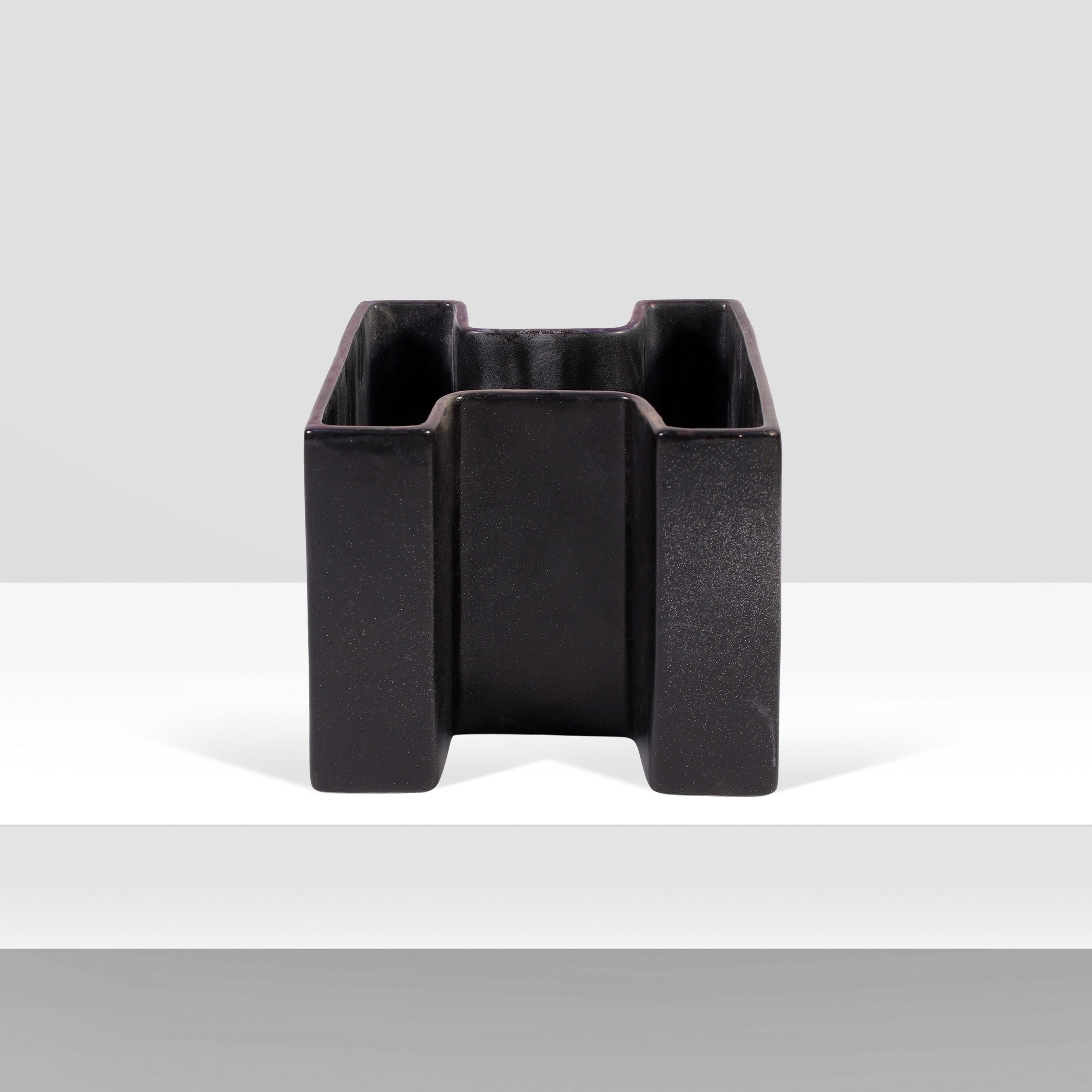 vaso in ceramica nera, firmato "H. Italy" sotto la base