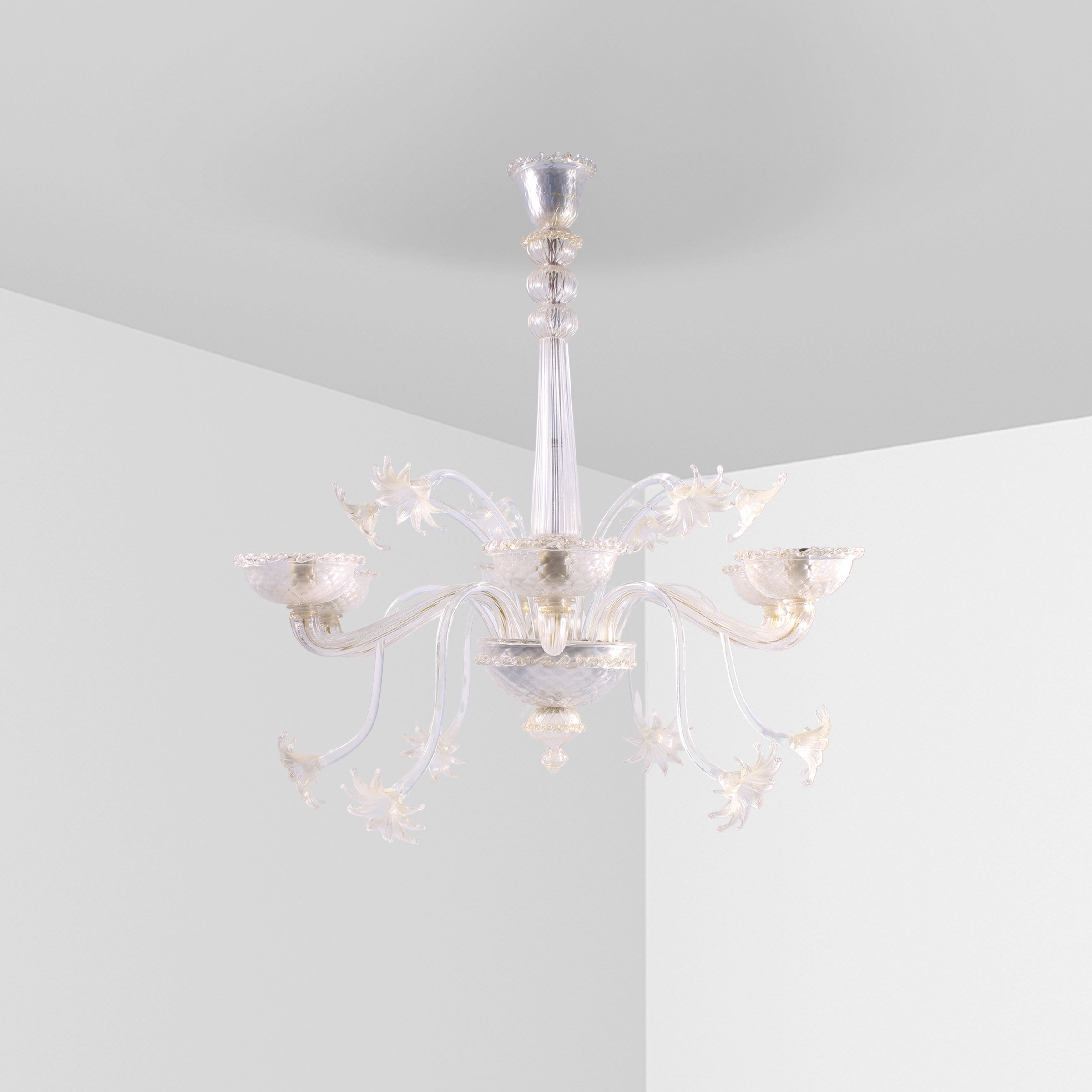 lampada a sospensione, struttura in vetro con inclusione in oro.